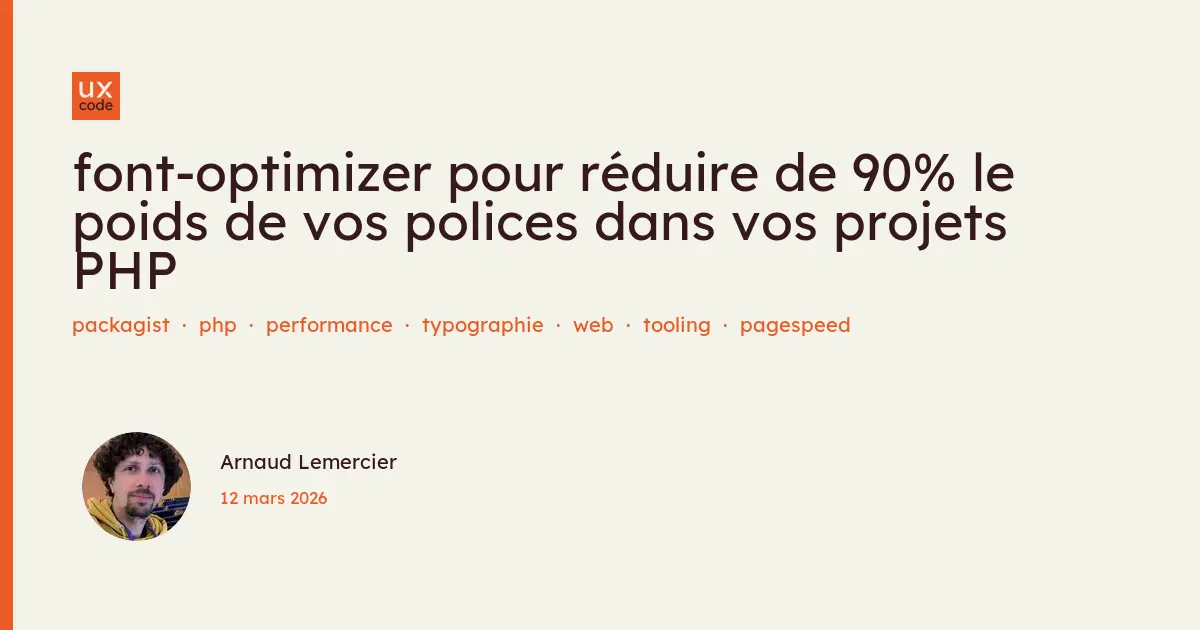 Concrètement, font-optimizer ajoute une commande qui va parcourir vos fichiers TTF (source) et en créer des versions WOFF2 optimisée dans votre dossier /public/fonts/ (personnalisable)